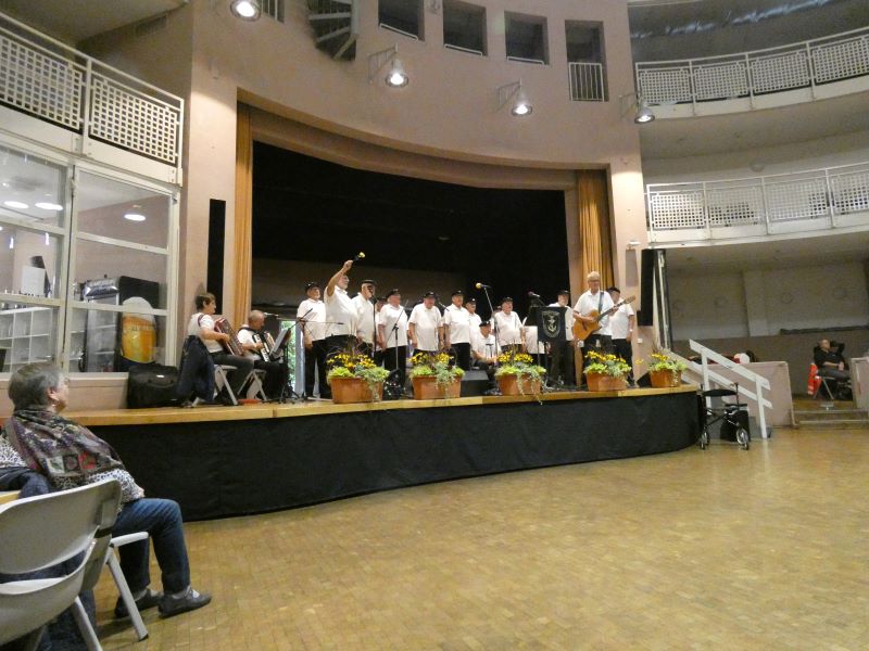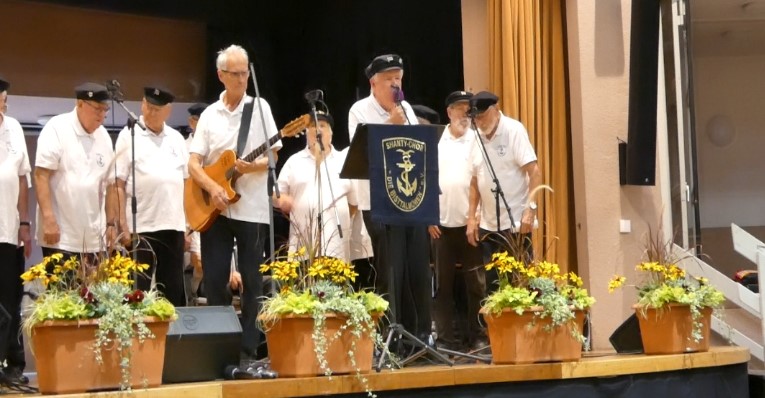Für alle Seniorinnen und Senioren aus Dudweiler fand am Dienstag, den 30.09.2025 ein Konzert im Bürgerhaus Saarbrücken Dudweiler statt. Beginn war um 15:00. Der Eintritt war nur mit einer kostenlosen Eintrittskarte der Landeshauptstadt Saarbrücken möglich. Der Chor hatte zum ersten Mal die Gelegenheit im Bürgerhaus in Dudweiler zu singen. Der Anlass der Einladung war, das Shanty-Konzert für Senioren in Dudweiler musikalisch zu gestalten. Das Konzert war sehr gut besucht.. Alle Zuhörer waren begeistert. Sie klatschten und sangen mit und viele bewegten sich im Rhythmus der Musik. Es ist immer wieder schön, wenn man beim Publikum merkt, dass es ihm gefällt und sie begeistert Beifall klatschen. Es trifft hier auch zu, wie das Zitat besagt: „Beifall ist des Künstlers, in diesem Fall der „Sänger und Musiker“, Lob. Hier, an dieser Stelle, teilen wir das Lob mit den Verantwortlichen, die dieses Shanty-Konzert für Senioren organisiert haben und sagen Danke für die Einladung. Es folgen nun ein kleine Bildserie über das Konzert.