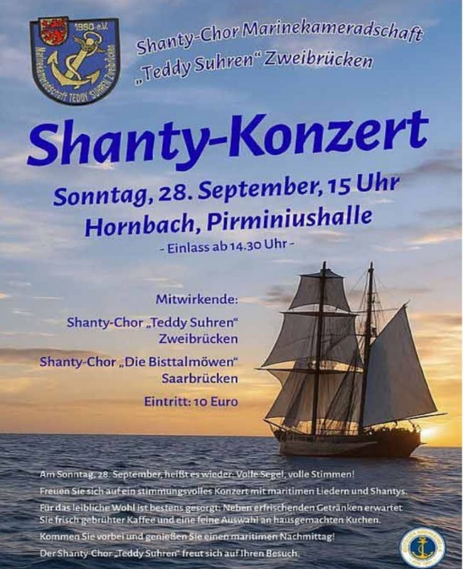 Shanty-Konzert „Teddy Suhren“ Zweibrücken am 28.09.2025 Pirminiushalle Hornbach Beginn ist um 15:00 Uhr